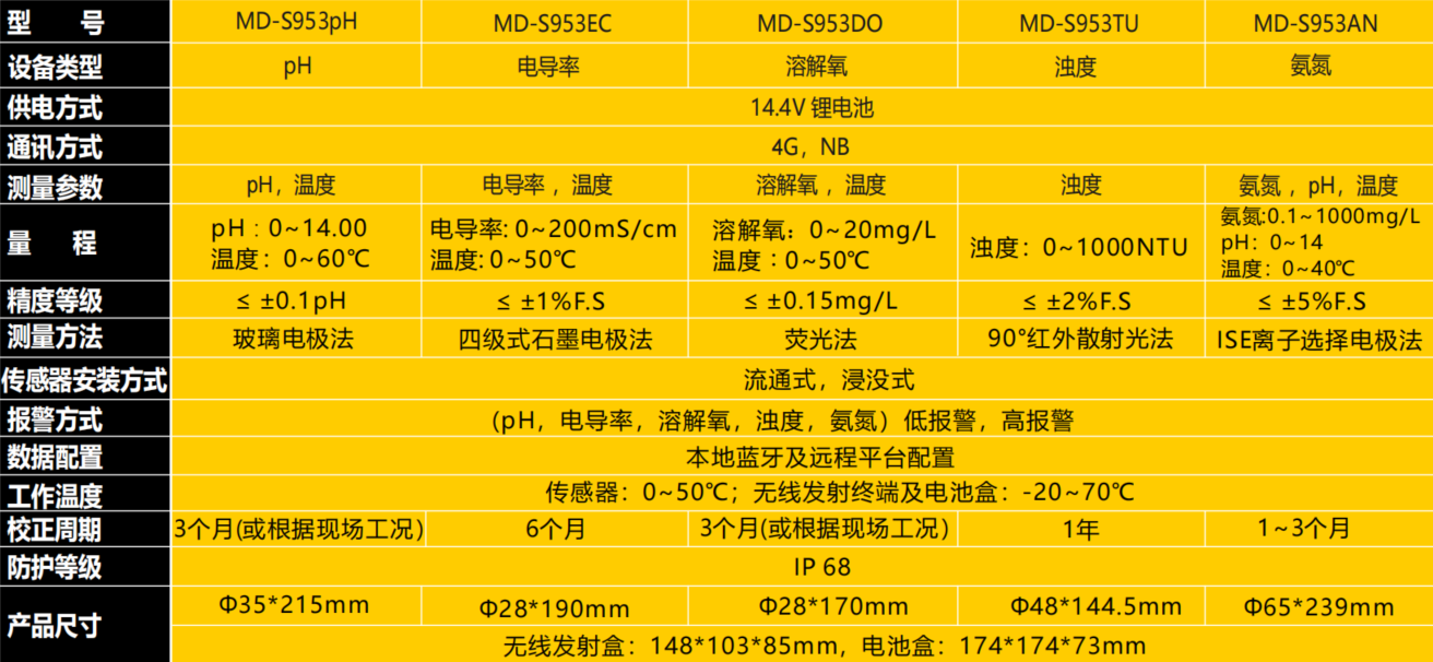 MD-S953系列無線水質(zhì)傳感器是一款將傳感器,通訊模塊,供電電源分體式設(shè)計的無線終端。