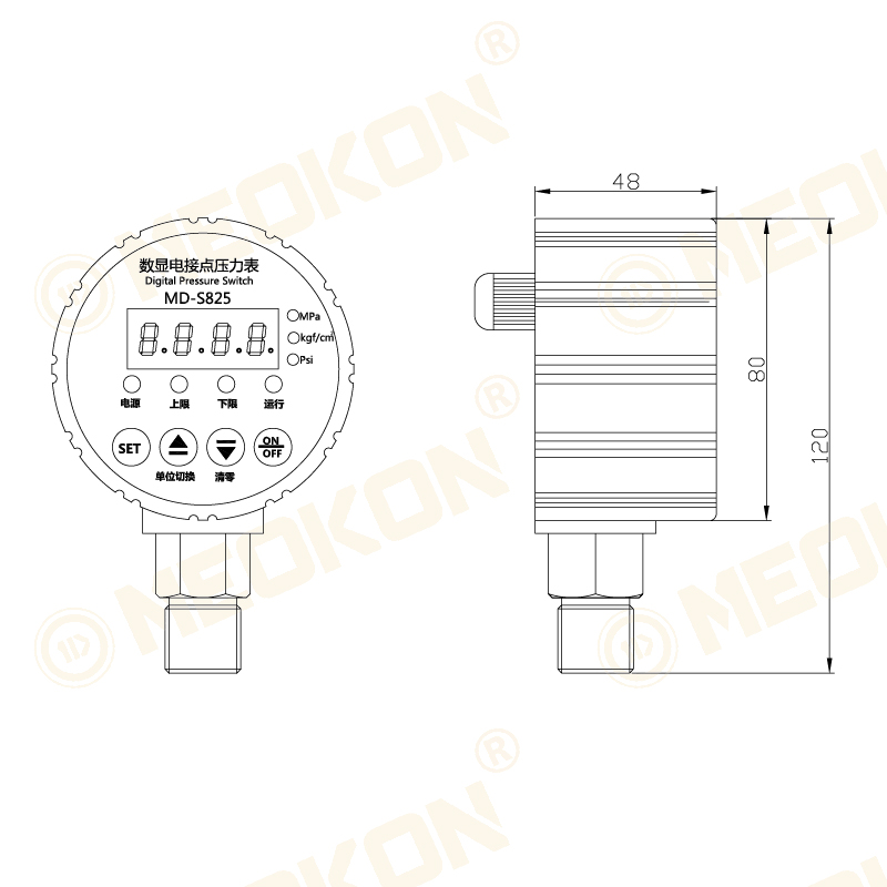 MD-S825 是一款替代機(jī)械式電接點壓力表的數(shù)字顯示的高精度數(shù)顯電接點壓力表,集壓力測量、顯示、控制于一體的新型電接點壓力表。該系列產(chǎn)品具有一鍵清零,三種顯示單位切換等多種功能。
